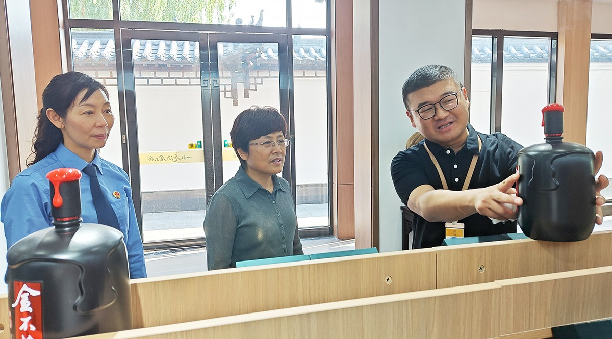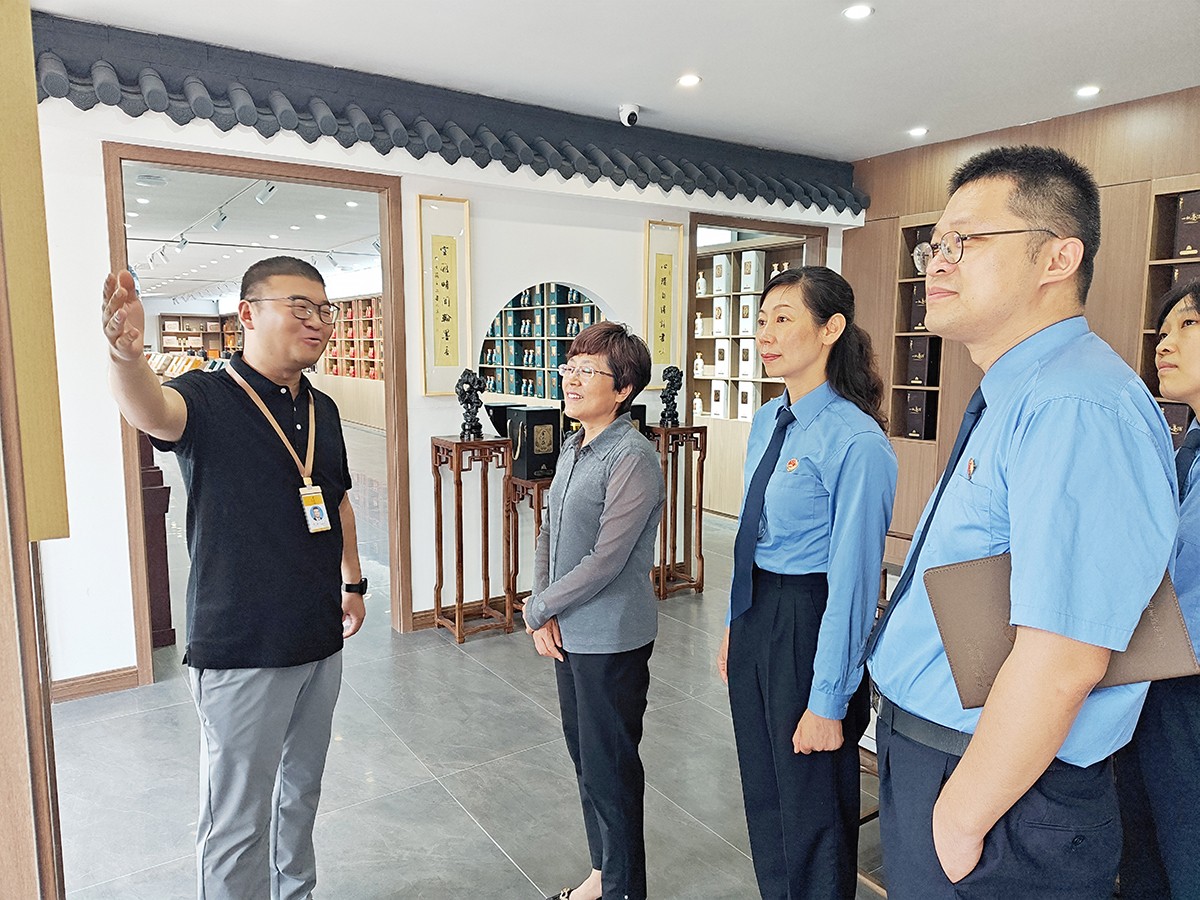 劉繼英一行在金不換集團(tuán)黨委書記、總裁支濤的陪同下,實地查看了金不換白酒儲藏、銷售、生產(chǎn)、文化展示基地。聽取企業(yè)生產(chǎn)經(jīng)營情況和發(fā)展規(guī)劃介紹。劉繼英檢察長對金不換多年來堅持守法誠信經(jīng)營,創(chuàng)造良好生產(chǎn)經(jīng)營環(huán)境,取得高質(zhì)量發(fā)展給予高度贊揚(yáng)。